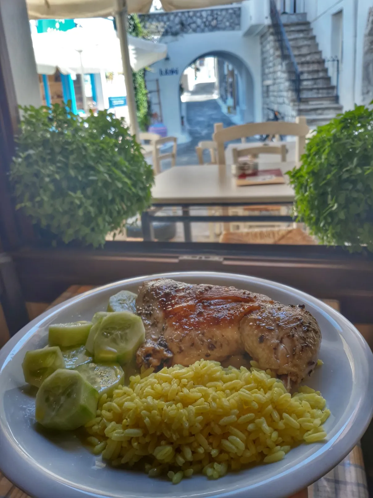 Εκεί, χειμώνα-καλοκαίρι, με εσωτερικό και εξωτερικό χώρο, λειτουργεί ένα ζεστό στέκι γεύσης «Η Πιάτσα» που έχει τις ρίζες του στα 1990. Ξύλινα τραπεζάκια, γήινοι τόνοι και φωτογραφίες του νησιού ομορφαίνουν τους τοίχους και σας μεταφέρουν σε παλιά χρόνια.