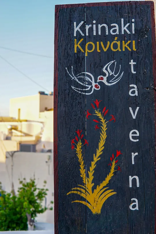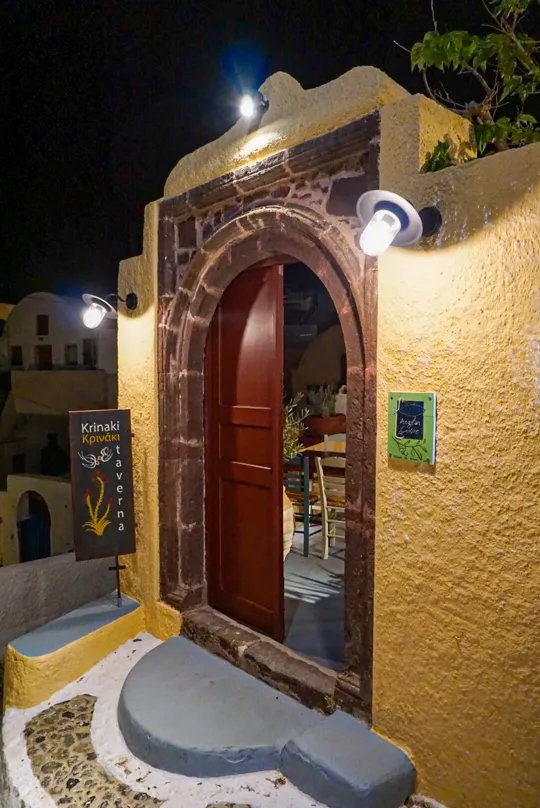 Το “Κρινάκι” από ένα μικρό οινοποιείο του 19ο αιώνα μετατράπηκε σε μια απλή παραδοσιακή ταβέρνα το 2007 στο μικρό χωριό της Σαντορίνης τη Φοινικιά χωριό των γεωργών της Οία.