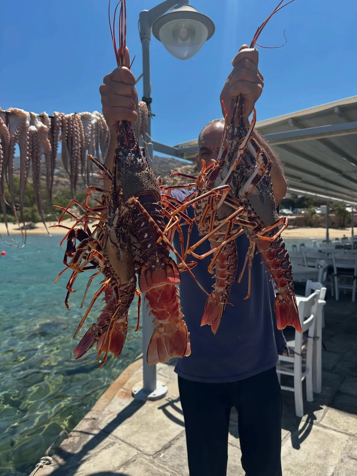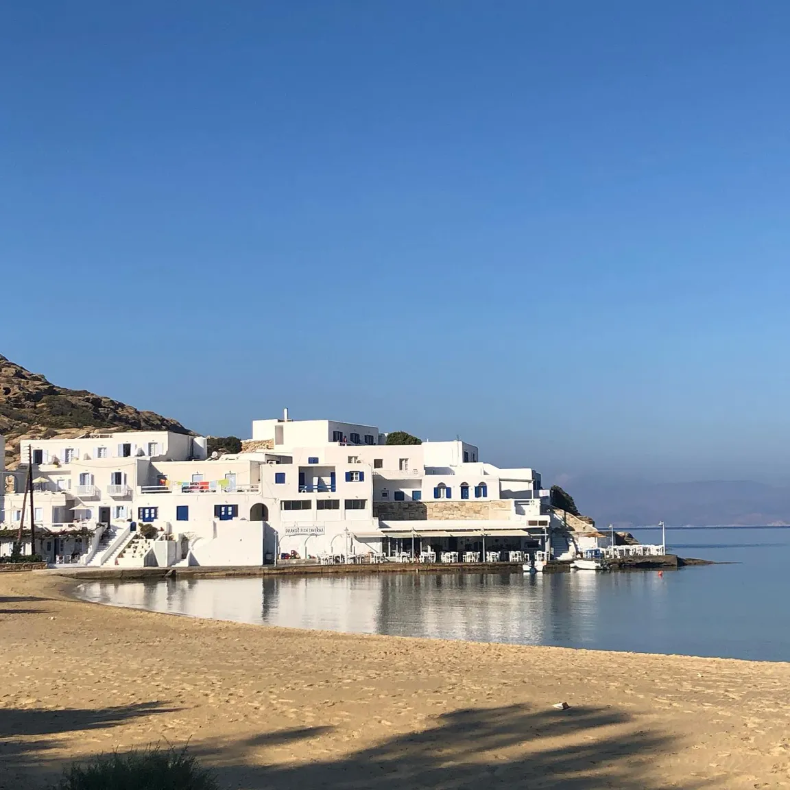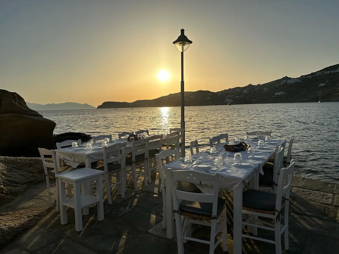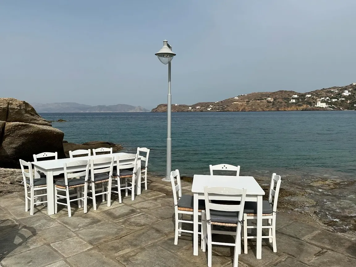 Στην Ίο, το εστιατόριο του Γιώργου Δράκου «κλείνει» τη μια άκρη του θρυλικού Μυλοπότα, σαν μικρό ακρωτήρι. Υπάρχει εκεί από τις αρχές της δεκαετίας του ’60, από τότε δηλαδή που οι χίπις παραθέριζαν στις γύρω σπηλιές. Πίσω από το εστιατόριο κρύβεται ο ήλιος όταν πάει να βασιλέψει. Είναι κομμάτι του τοπίου, σαν τη φαρδιά αμμουδιά, τα βράχια και τα σπίτια των γάλλων ζωγράφων στην απέναντι μεριά της παραλίας. Οι βάρκες είναι δεμένες και τα δίχτυα σωριασμένα κοντά στις μπλε καρέκλες. Τα κεφαλόπουλα τριγυρίζουν δίπλα ακριβώς, όπως και οι γάτες, τσιμπολογούν τα ψίχουλα που πέφτουν από τα τραπέζια στο νερό.