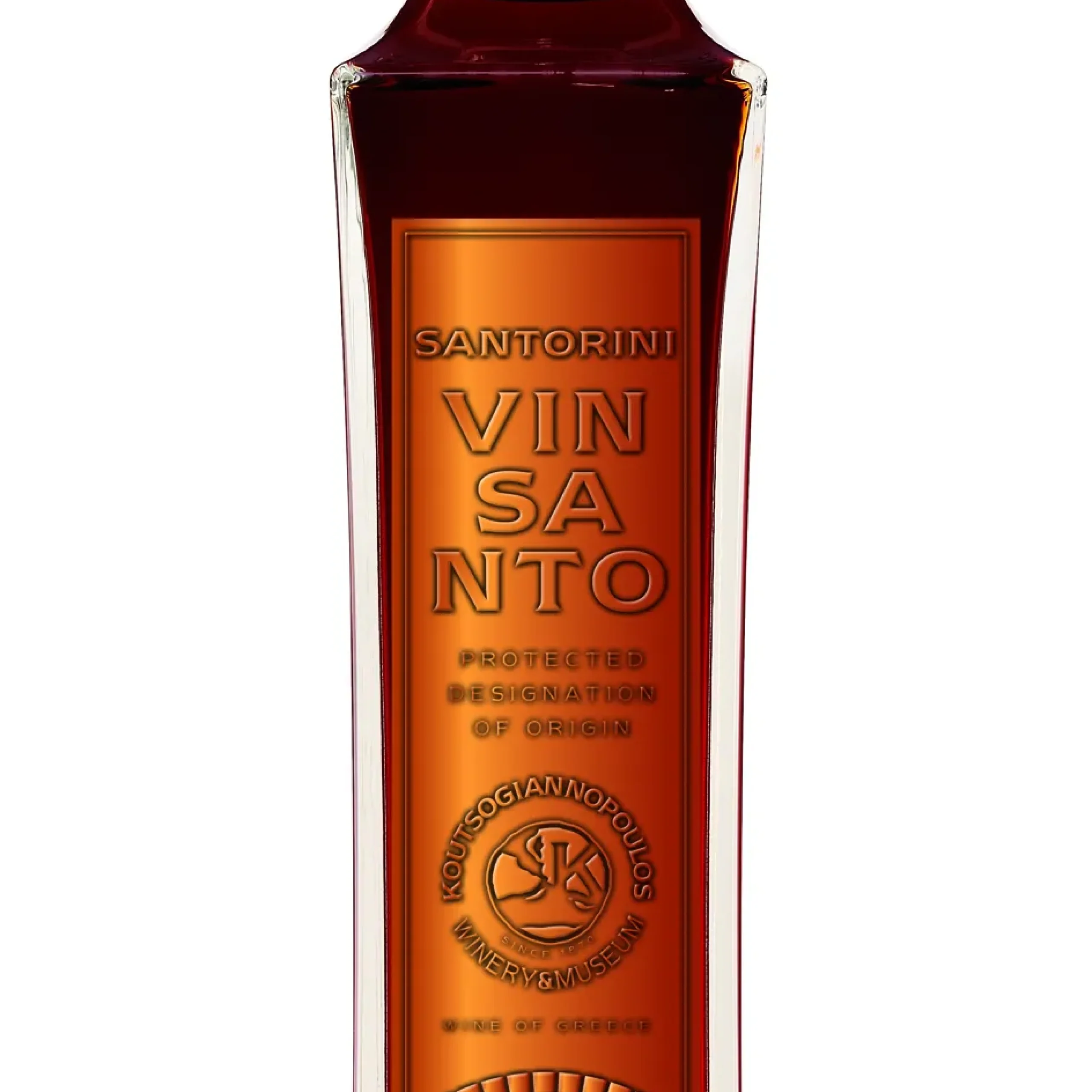 Προστατευόμενη Ονομασία Προέλευσης: Σαντορίνη. Ποικιλιακή Σύνθεση: 75% Ασύρτικο, 25% Αηδάνι. Η ιστορία του Vinsanto, ή αλλιώς το κρασί της Σαντορίνης, είναι άρρηκτα συνδεδεμένη με το όνομα Σαντορίνη. Μια αυστηρή επιλογή από παλιούς αμπελώνες ειδικά σχεδιασμένους για αυτό το στυλ. Τρυγάται υπερώριμο σχεδόν 15 μέρες μετά την κύρια ημερομηνία τρύγου, δίνοντας απίστευτα χαμηλές αποδόσεις. Τα σταφύλια λιάζονται για 10 – 12 μέρες. Η φυσική ζύμωση λαμβάνει χώρα σε ανοξείδωτες δεξαμενές και ωριμάζει για 4 χρόνια σε παλιά δρύινα γαλλικά βαρέλια. Γευστικά Χαρακτηριστικά: Χρώμα μέτριο κεχριμπαρί με καφέ ανταύγες. Εκρηκτική μύτη με τεράστια πολυπλοκότητα από αποξηραμένα φρούτα, καραμέλα και κηρήθρα στο προσκήνιο. Ένα λαχταριστό κρασί με παχύρευστή γλυκιά υφή αλλά και με δροσιστική οξύτητα που σε ετοιμάζουν για την επόμενη γουλιά. Ιδανική απόλαυση στους 6 – 8 °C. Συνοδεύει εξαιρετικά παλαιωμένα τυριά, καρυδόπιτα ή μπακλαβά με παγωτό. Δυναμική Παλαίωσης: σχεδόν επ’ αόριστον.