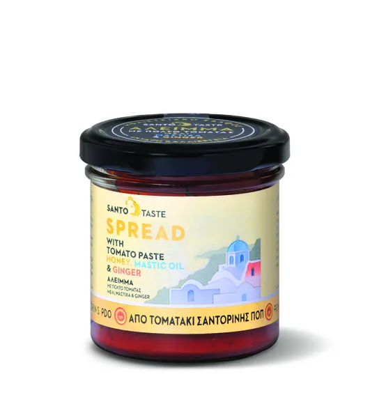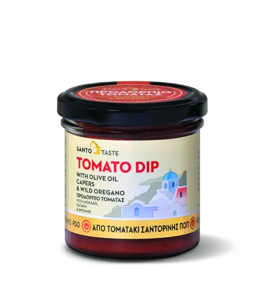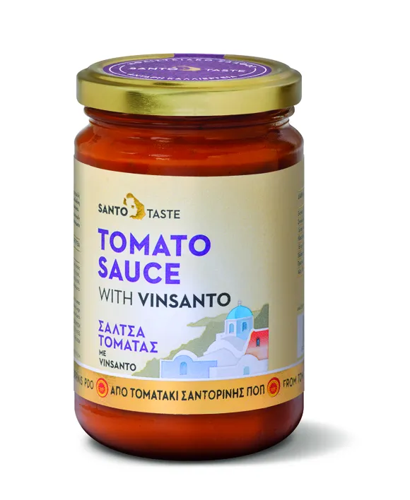 Συστατικά: Χυμός από Τοματάκι Σαντορίνης, πολτός από Τοματάκι Σαντορίνης διπλής συμπύκνωσης, Vinsanto, εξαιρετικό παρθένο ελαιόλαδο, κρεμμύδι, σκόρδο, μαϊντανός, βασιλικός, καρυκεύματα....