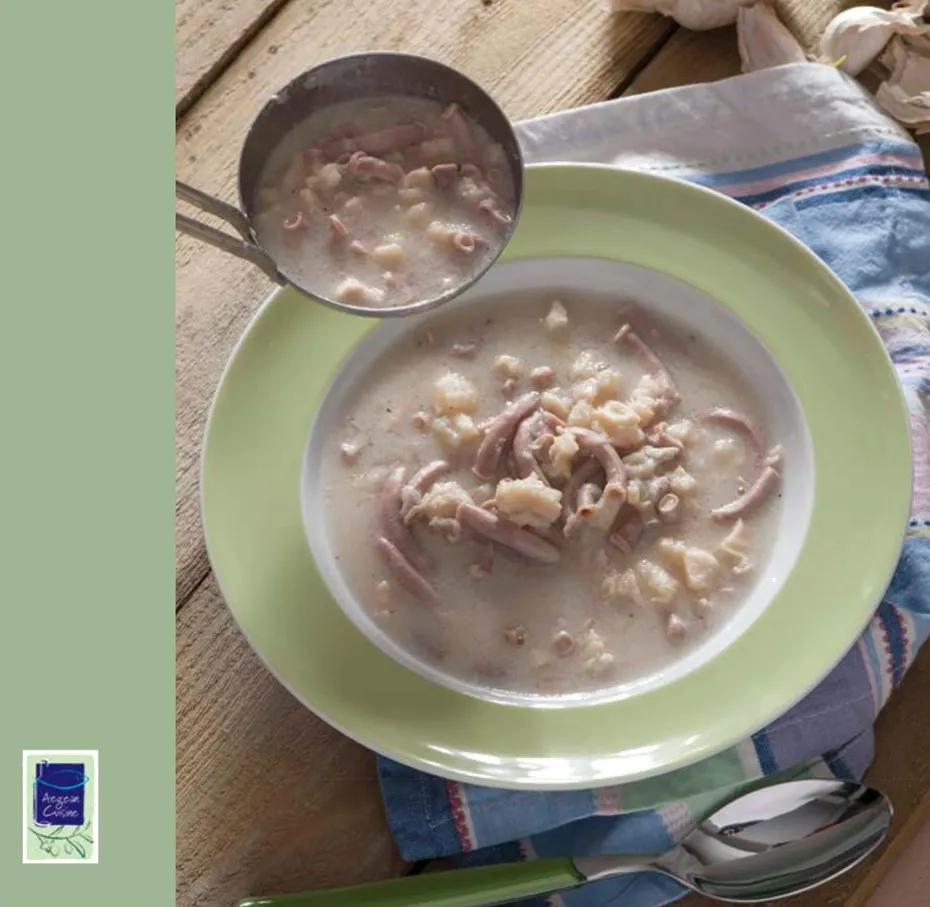 Χτυπάμε το σκόρδο καλά στο γουδί ή στο μπλέντερ και το ανακατεύουμε με το ξίδι. Προσθέτουμε το μείγμα στην κατσαρόλα και αφήνουμε να πάρουν μερικές βράσεις. Σερβίρουμε αμέσως σε βαθιά πιάτα.