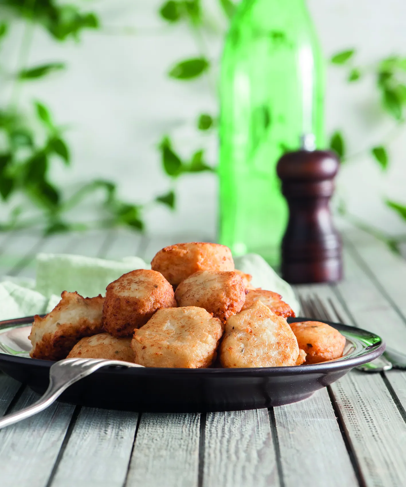 μείγμα, που θα πρέπει να είναι αρκετά σφιχτό. Πλάθουμε μικρούς κεφτέδες, σε μέγεθος ενός καρυδιού. Σε ένα βαθύ τηγάνι ζεσταίνουμε το ελαιόλαδο σε μέτρια φωτιά και ρίχνουμε τους κεφτέδες, λίγους λίγους, να τηγανιστούν, φροντίζοντας να τους